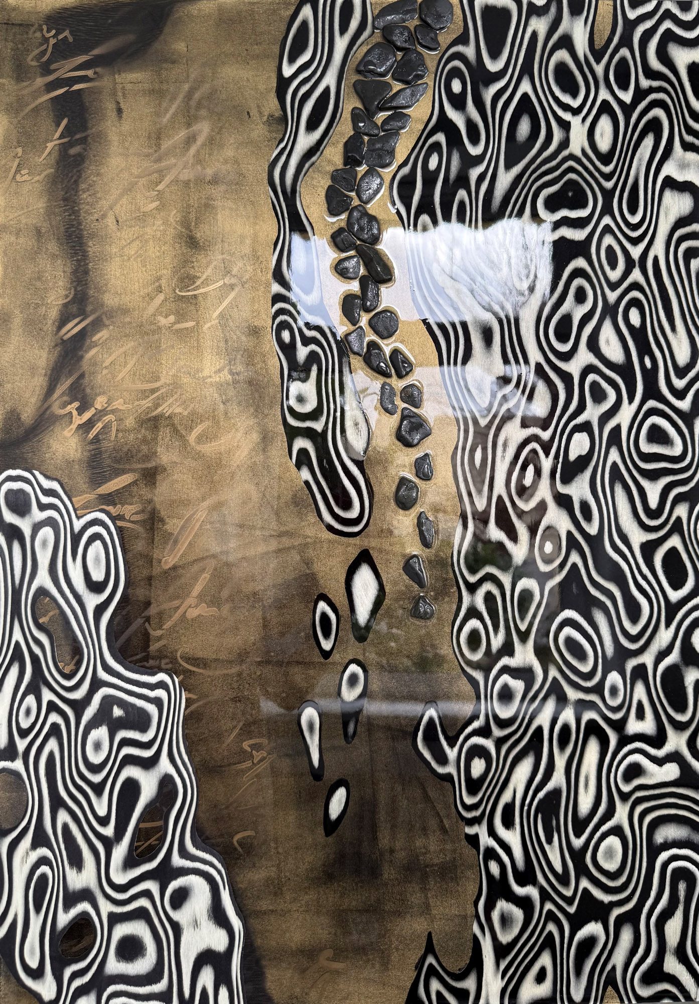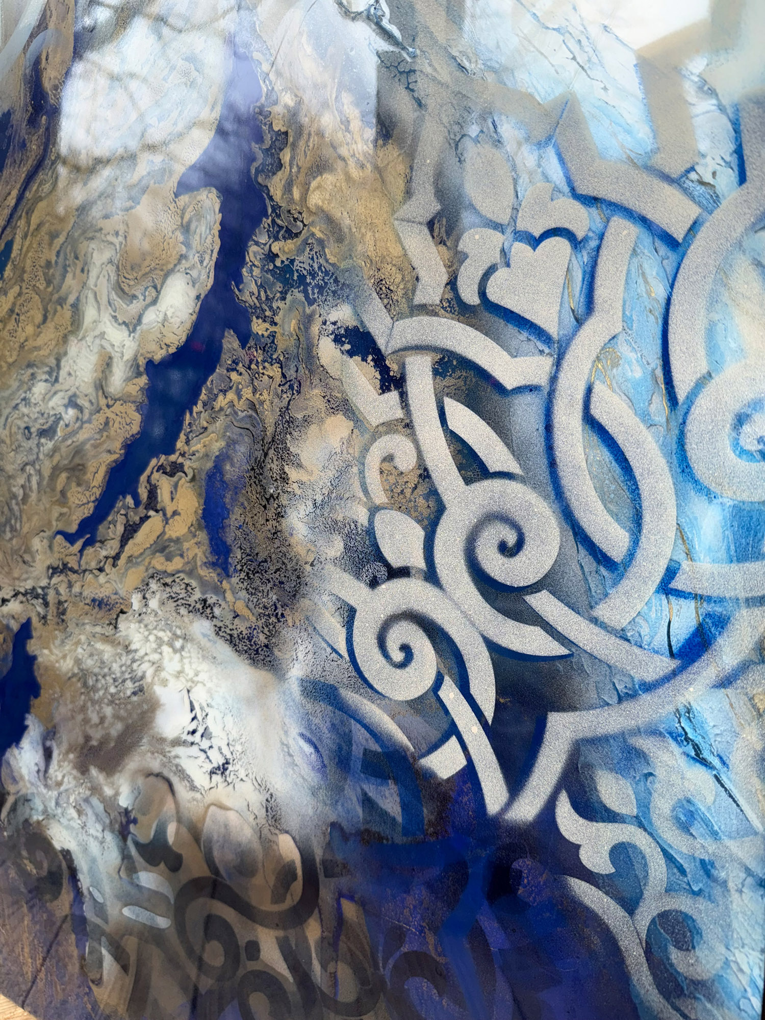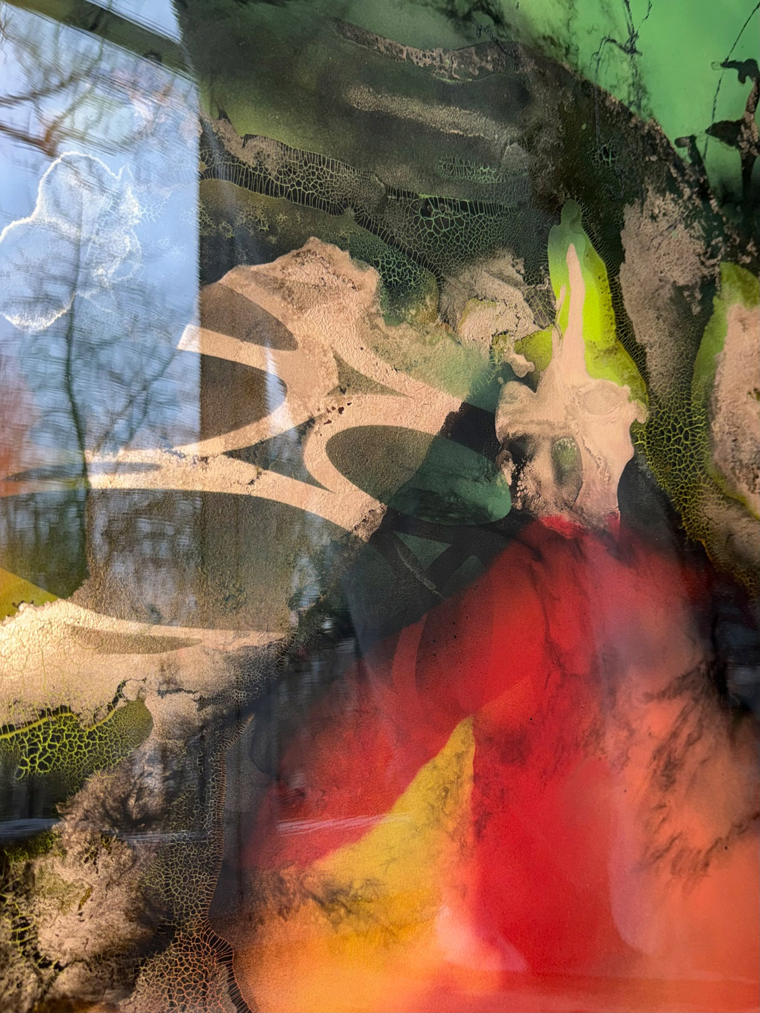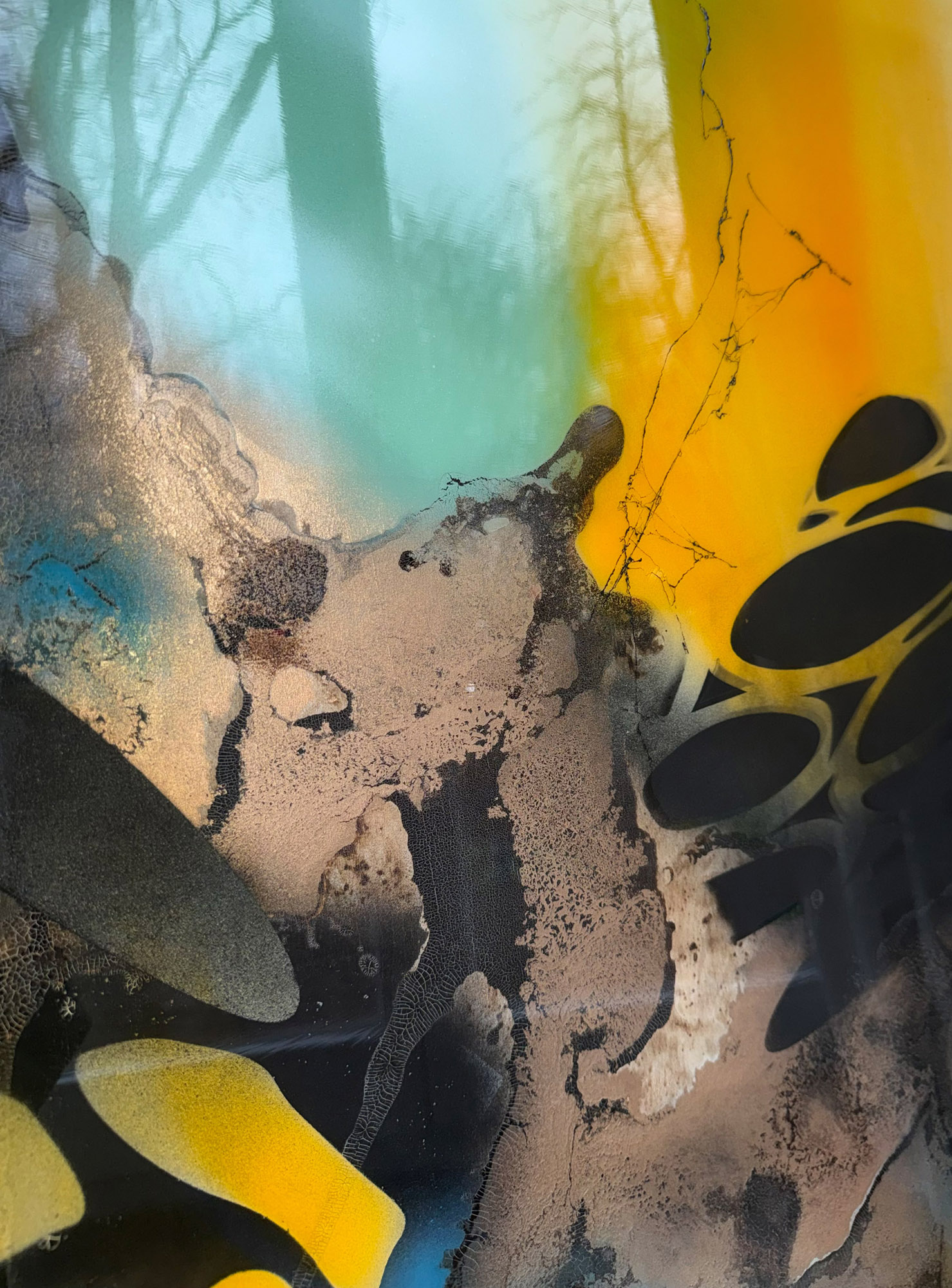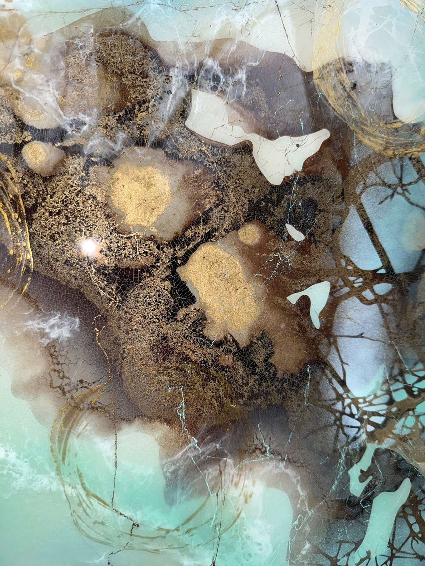 Die Strukturen stehen für Aufbruch, Entfaltung, Erdung und Bewegung – für innere Prozesse, die sich ihren Raum nehmen. Glänzende Oberflächen und goldene Akzente schaffen Momente der Reflexion und verleihen den Arbeiten Tiefe und Lebendigkeit. Kräftige Farben tragen Energie und Lebensfreude in sich und machen sie sichtbar.