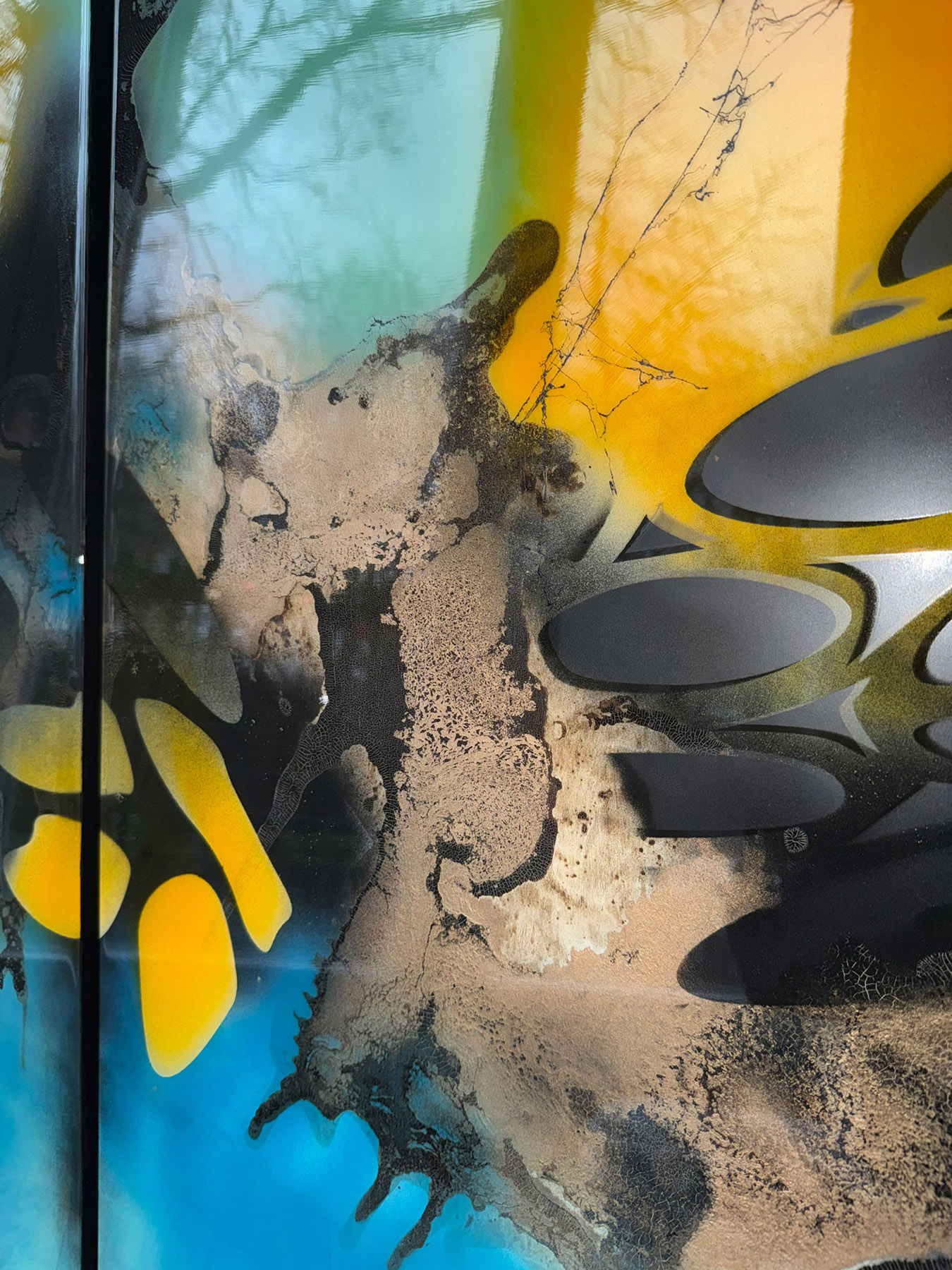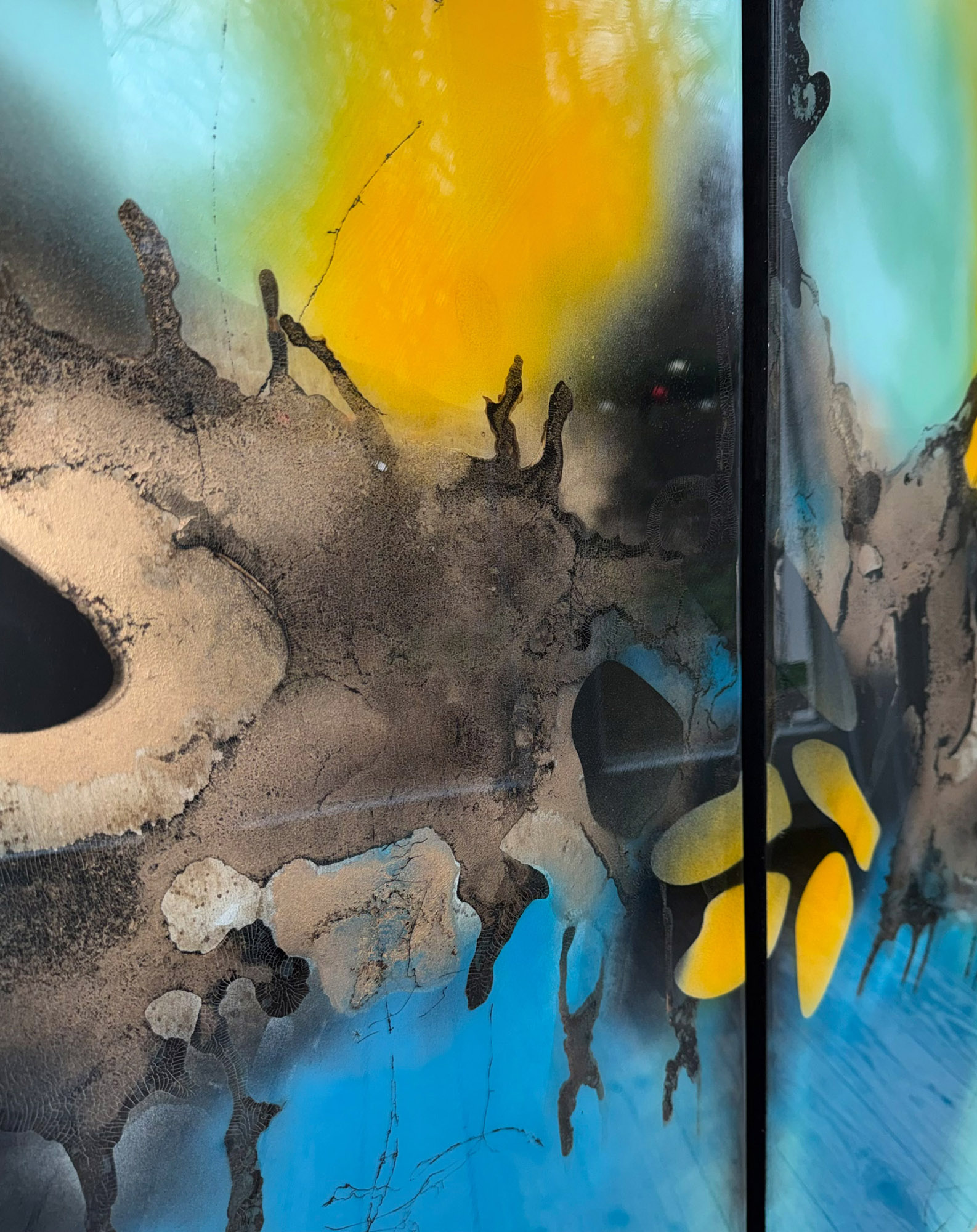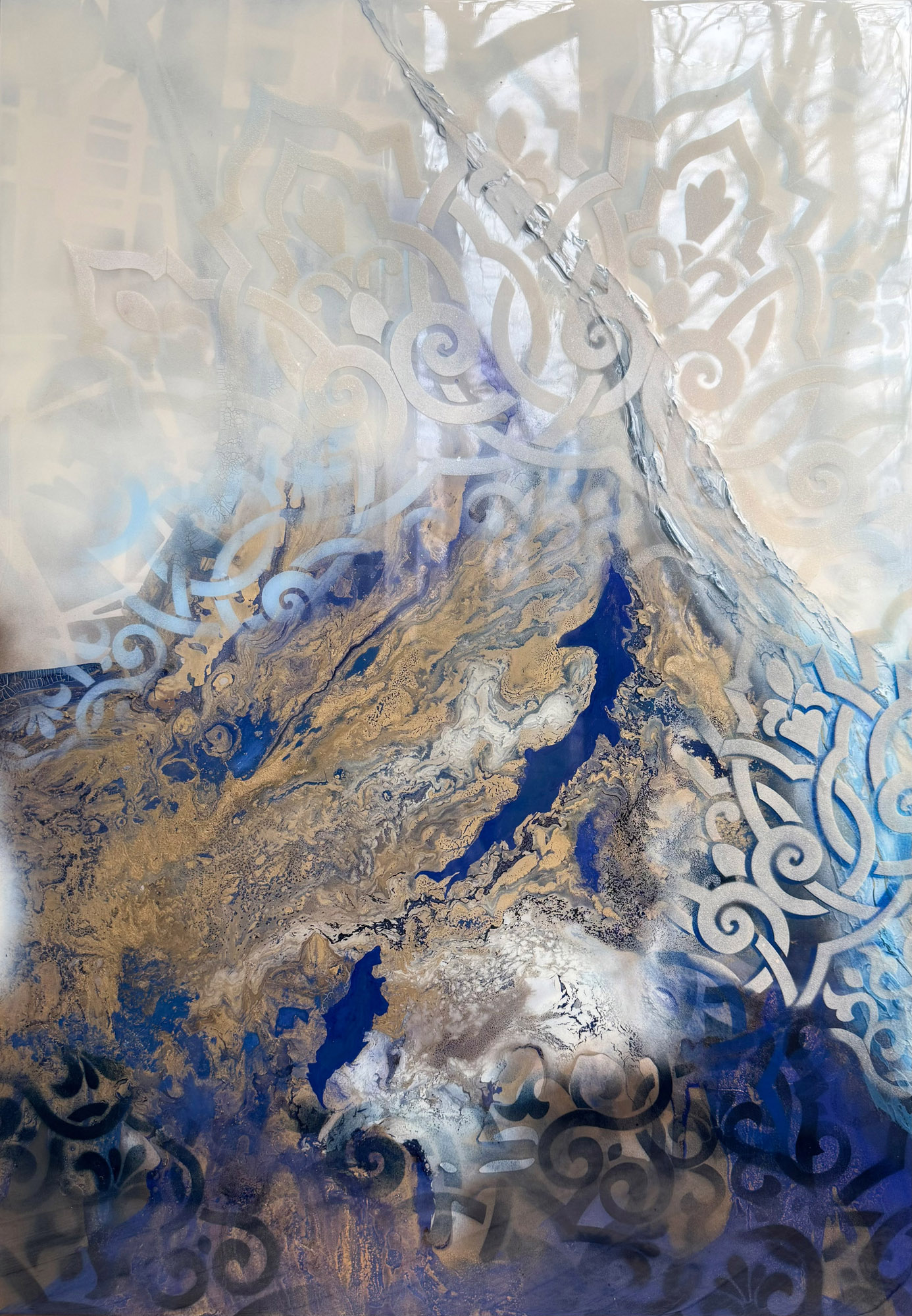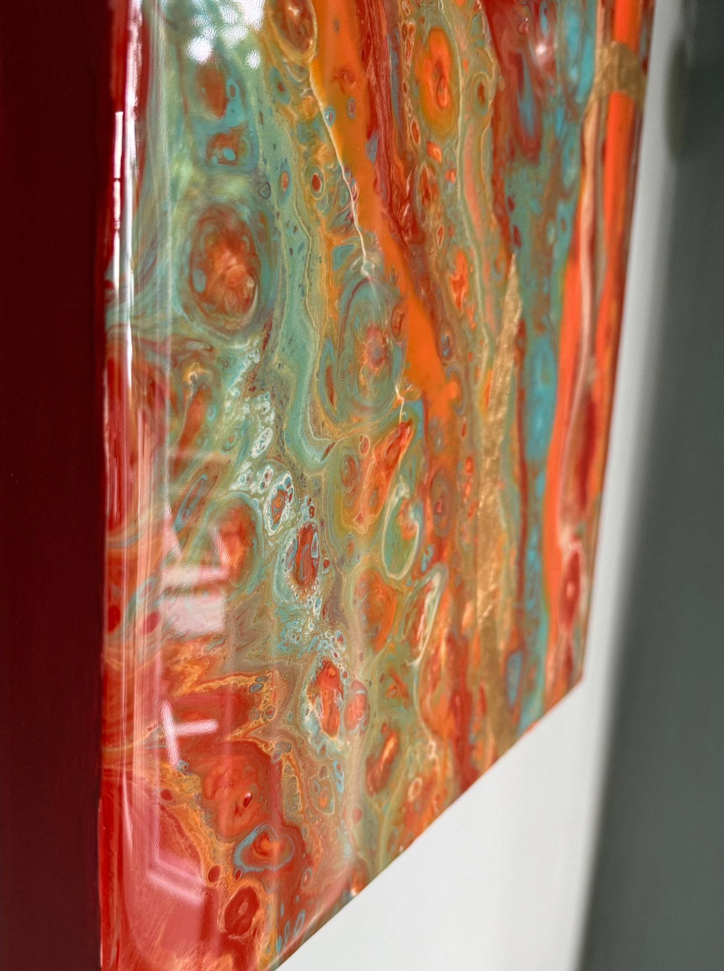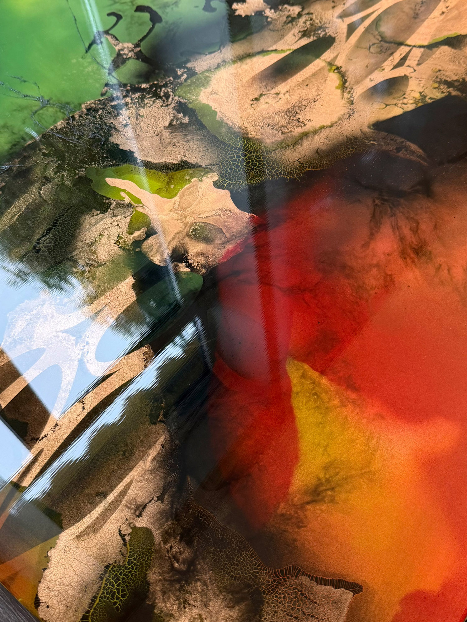 Die Strukturen stehen für Aufbruch, Entfaltung, Erdung und Bewegung – für innere Prozesse, die sich ihren Raum nehmen. Glänzende Oberflächen und goldene Akzente schaffen Momente der Reflexion und verleihen den Arbeiten Tiefe und Lebendigkeit. Kräftige Farben tragen Energie und Lebensfreude in sich und machen sie sichtbar.