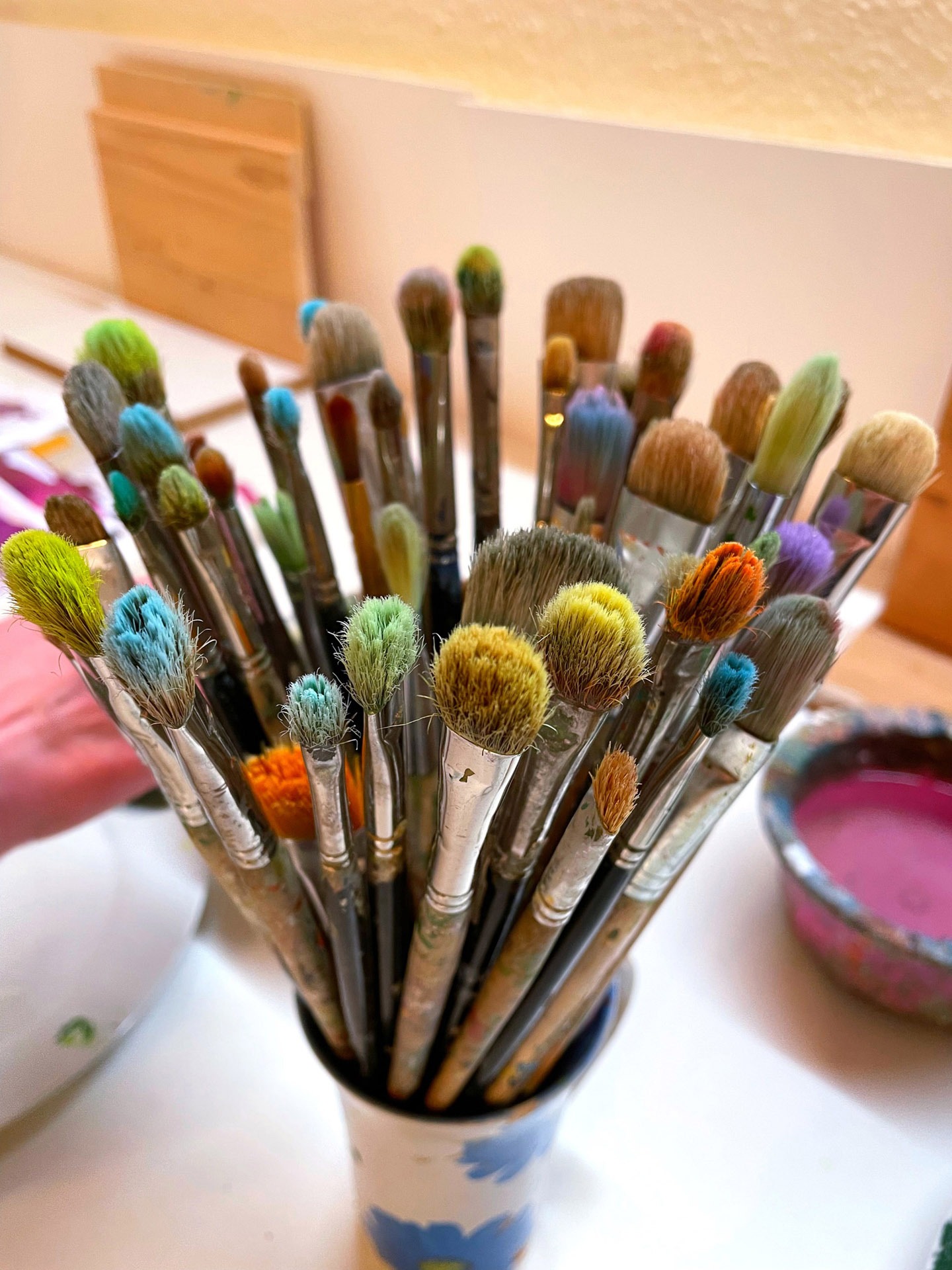 Ich wähle meine Malgründe mit Bedacht, um meine Visionen zum Leben zu erwecken. Jede Oberfläche wird zu einem Medium der Ausdrucksweise, ein Portal in eine Welt, die jenseits der physischen Realität liegt.