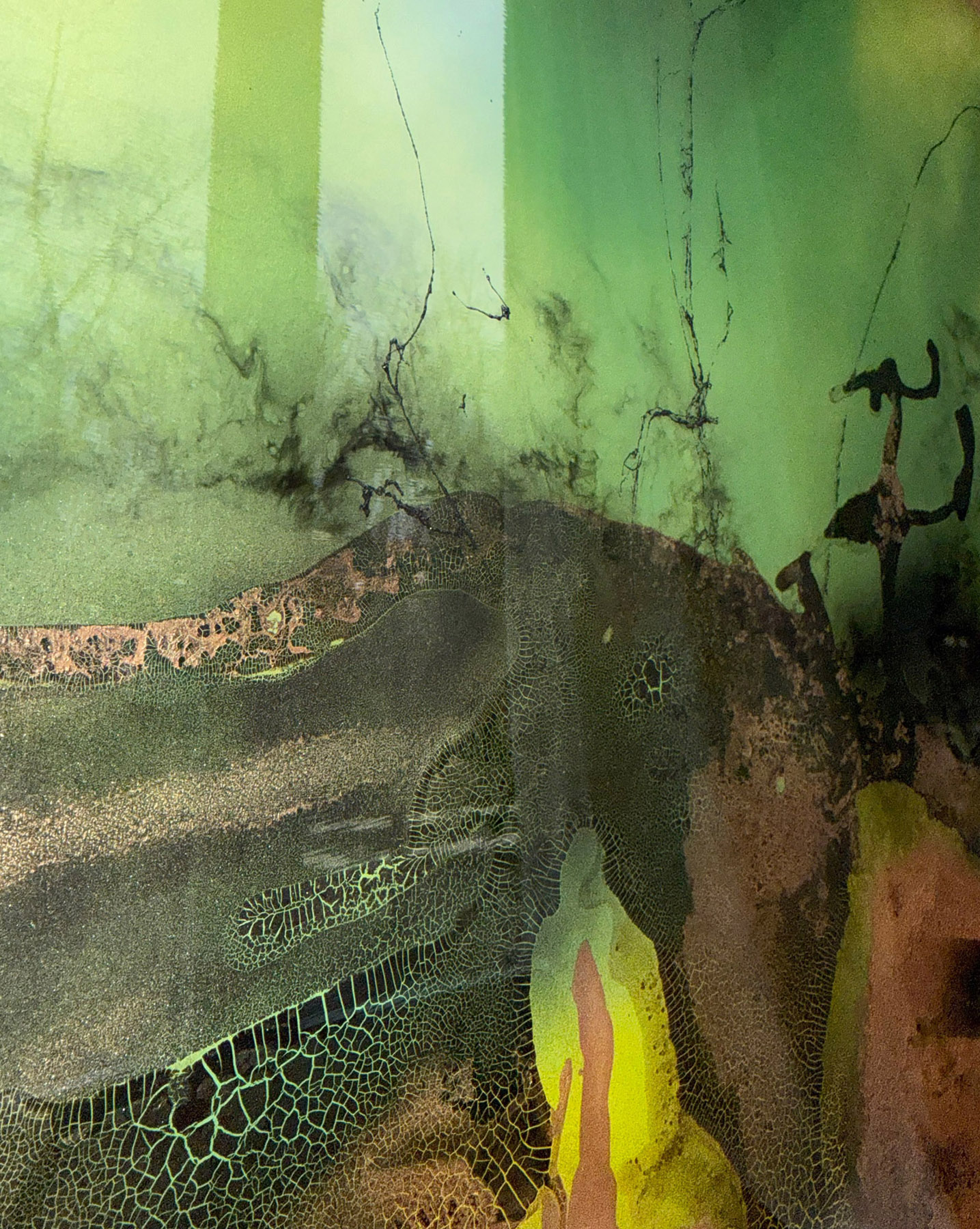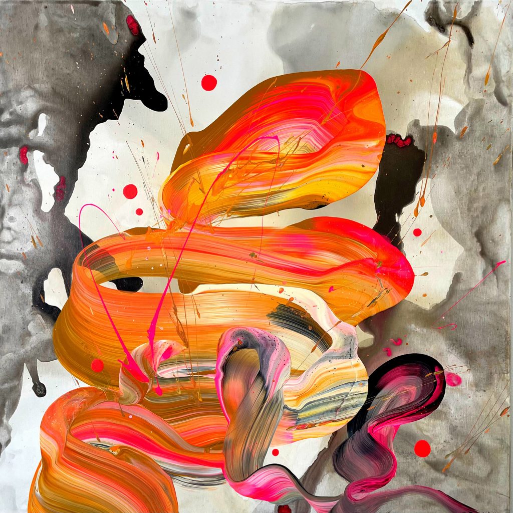 Meist fließende Farben, Strukturen und vielschichtige Oberflächen erzeugen Spannungsfelder zwischen Dynamik und Tiefe.